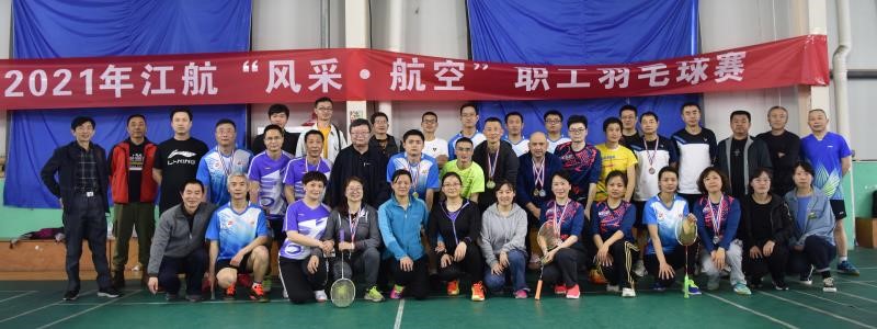 2021年江航“风采•航空”职工羽毛球赛分为预赛和决赛两个阶段在“羽之星”羽毛球馆进行。公司党委副书记、工会主席王永骞亲临决赛现场观看比赛,鼓劲为参赛选手呐喊加油,并为获得五个项目前四名的参赛队员颁发了奖金和奖牌。