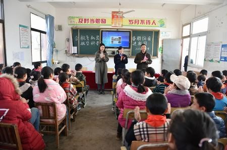 12月4日,江航团委组织吴大观青年志愿服务队走进长丰县中韩友谊小学,开展“青春照亮扶贫路”主题活动,为学校6个年级约60名小朋友送去冬日温暖,同时为孩子们讲授了一堂精彩的航空科普课,点亮乡村学校儿童的航空梦、蓝天梦。